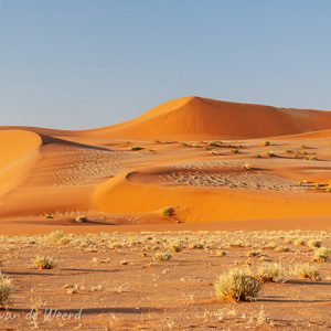 De oranje duinen bij Sesriem zijn (intussen) wereldberoemd. Toen wij er waren, konden we nog in redelijke rust fotograferen in Sossusvlei, Hiddenvlei en Deadvlei.