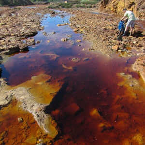 We lunchen in Minas de Rio Tinto en rijden daarna door naar Berrocal, ten zuiden van Nerva. Ongeveer 6 km voorbij dit dorp is een brug met direct daarna een parkeerplaats aan de linkerkant van de weg. Vanaf daar kunnen we makkelijk bij de rivier komen. We vermaken ons tot het begin van de avond op deze plek met alle watertjes, plasjes, stenen, kleuren en patronen. Wat een bijzonder landschap en vreemde kleuren. Ik heb mijn tekenblok en kleurkrijtjes mee en ga lekker een impressie van alle vormen en kleuren tekenen. De tijd vliegt voorbij.